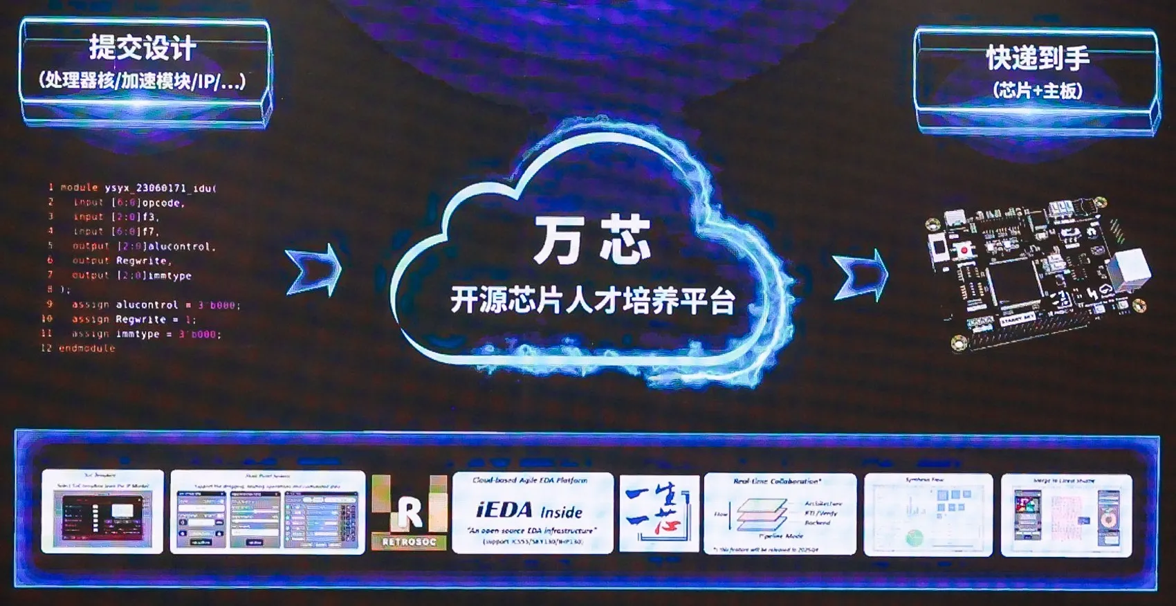 At the forum, the open-source chip team of the Institute of Computing Technology, Chinese Academy of Sciences, launched "Wanxin," an open-source chip talent cultivation platform. Since 2018, the team has been developing open-source chip design solutions, launching and deploying multiple projects including "One Student One Chip", open-source EDA, and open-source IP. After six years, the "Wanxin" open-source chip talent cultivation platform was launched. "Wanxin" supports the entire chip design process, providing a one-stop design and tapeout solution for open-source chip talent cultivation. In the future, "Wanxin" will be globally oriented, continuously dedicated to cultivating a large-scale open-source chip talent pool and helping to create a new ecosystem for open-source chip talent cultivation.