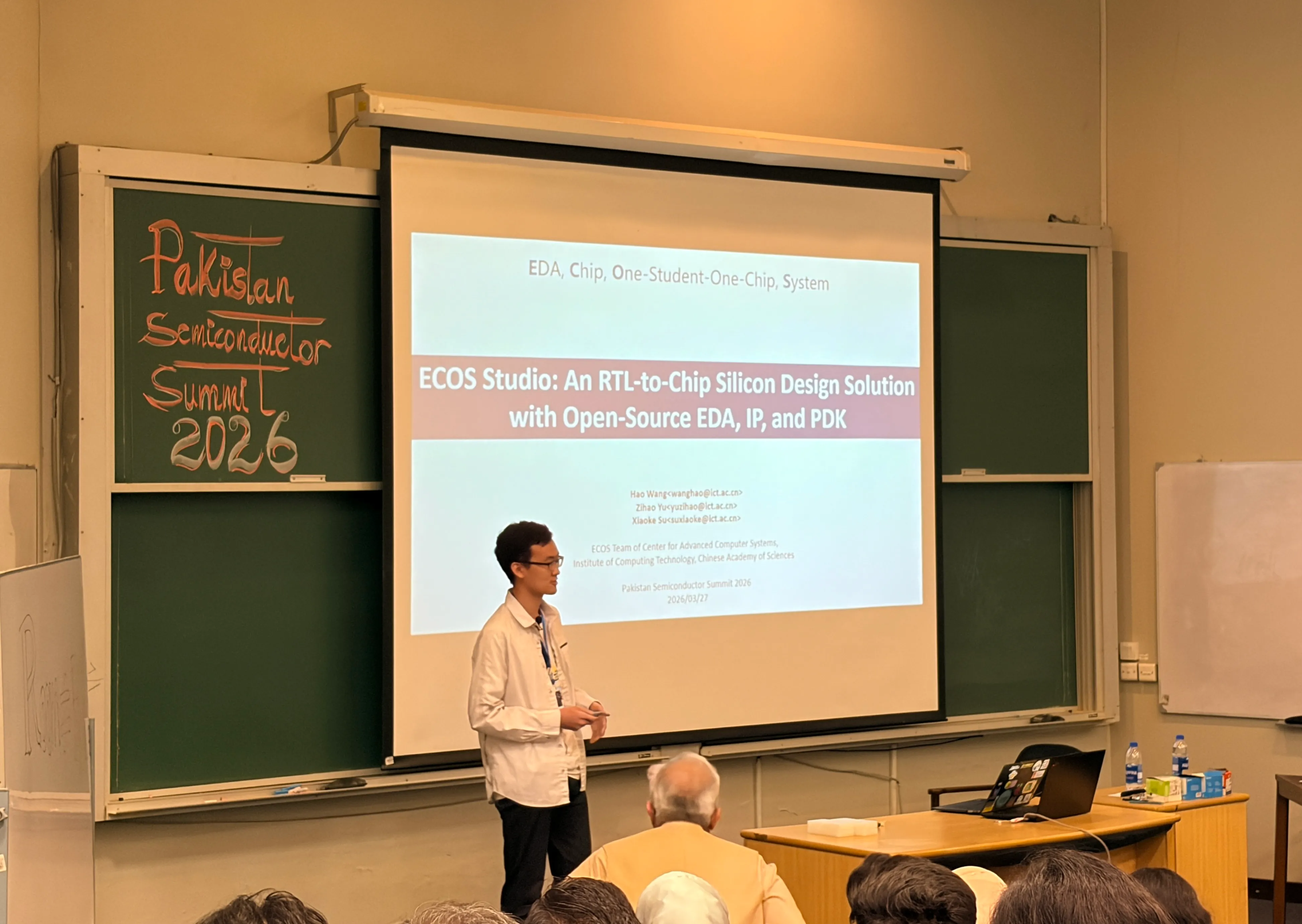 2026年3月27日-3月29日,“一生一芯”团队赴拉合尔参与第二届巴基斯坦半导体峰会。这是“一生一芯”第一次接触南亚地区,我们也有幸成为了在场唯一一个外国团队。本次峰会中,我们主要带来了三场报告,分别是余子濠博士的圆桌讨论、关于“一生一芯”小芯曼波机器人的poster展示以及同团队带来的关于ECOS Studio的tutorial报告。